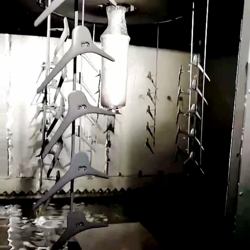 注意:吊掛具對靜電噴涂的影響是較大的。這是因?yàn)殚L時(shí)間大批量生產(chǎn)后,吊掛具作為接地極同樣很容易吸附上涂料,如不定期清理、更換,形成較高的電阻,大大降低靜電吸附效果。另外,應(yīng)特別注意工件的懸掛方式,以盡量減少噴涂死角。漆膜未干之前,應(yīng)妥善保護(hù),避免烈日直曬或嚴(yán)寒冰凍。
